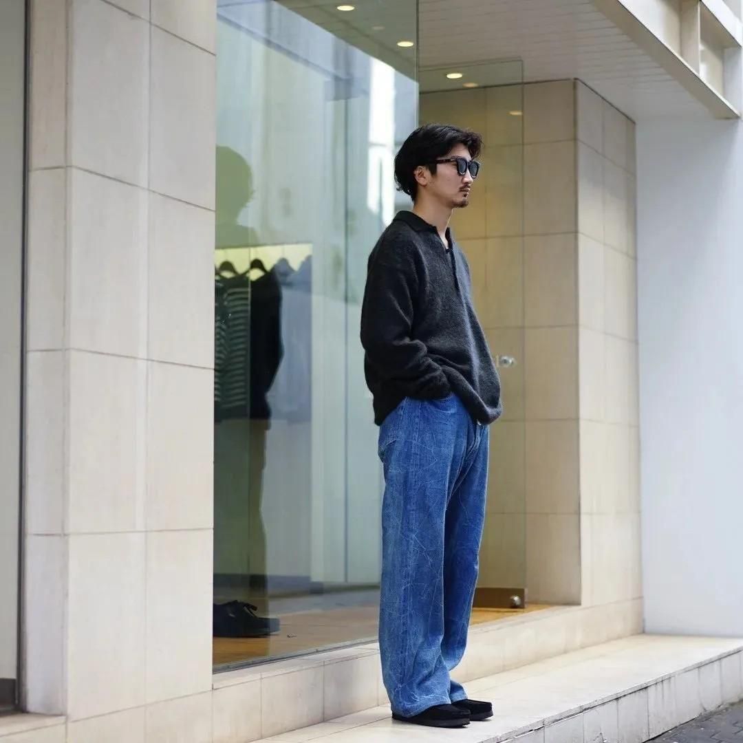 AURALEE (オーラリー) Brushed Super Kid Mohair Knit Polo/Ink Black
