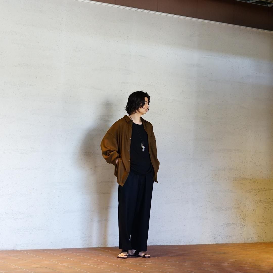 上品な光沢としなやかなドレープが魅力。ゆったりとしたシルエットと快適な穿き心地で、日常から上質を感じられる一本に仕上げられています。