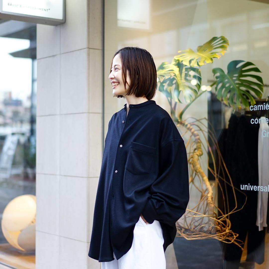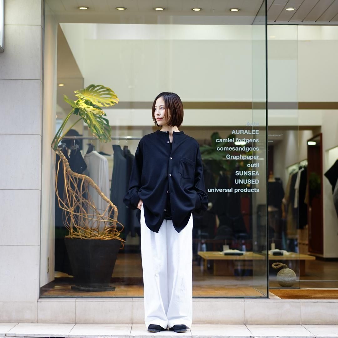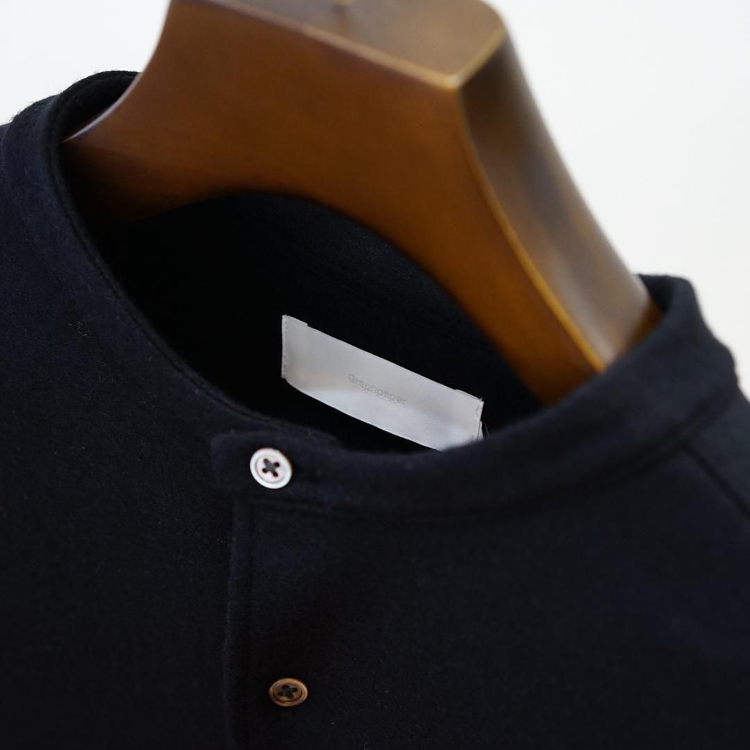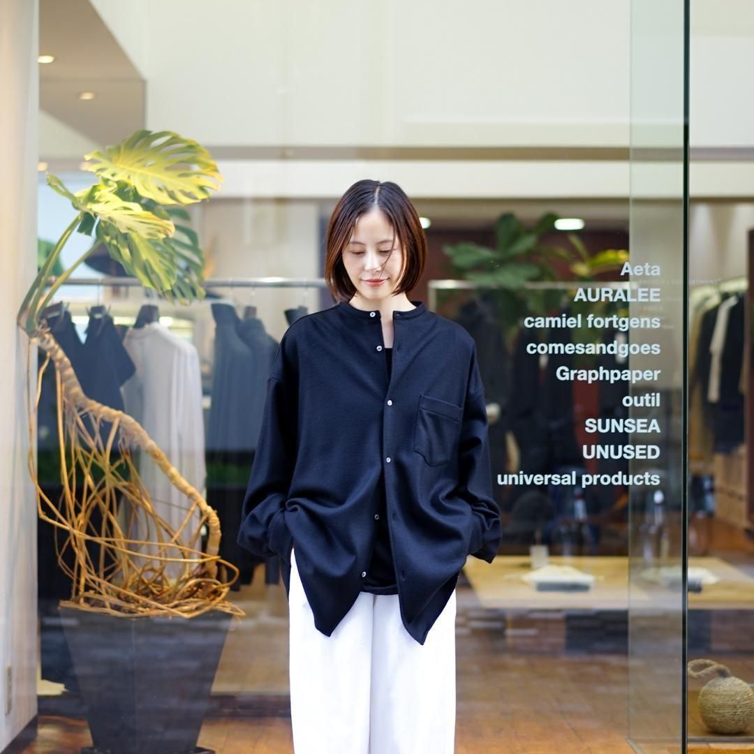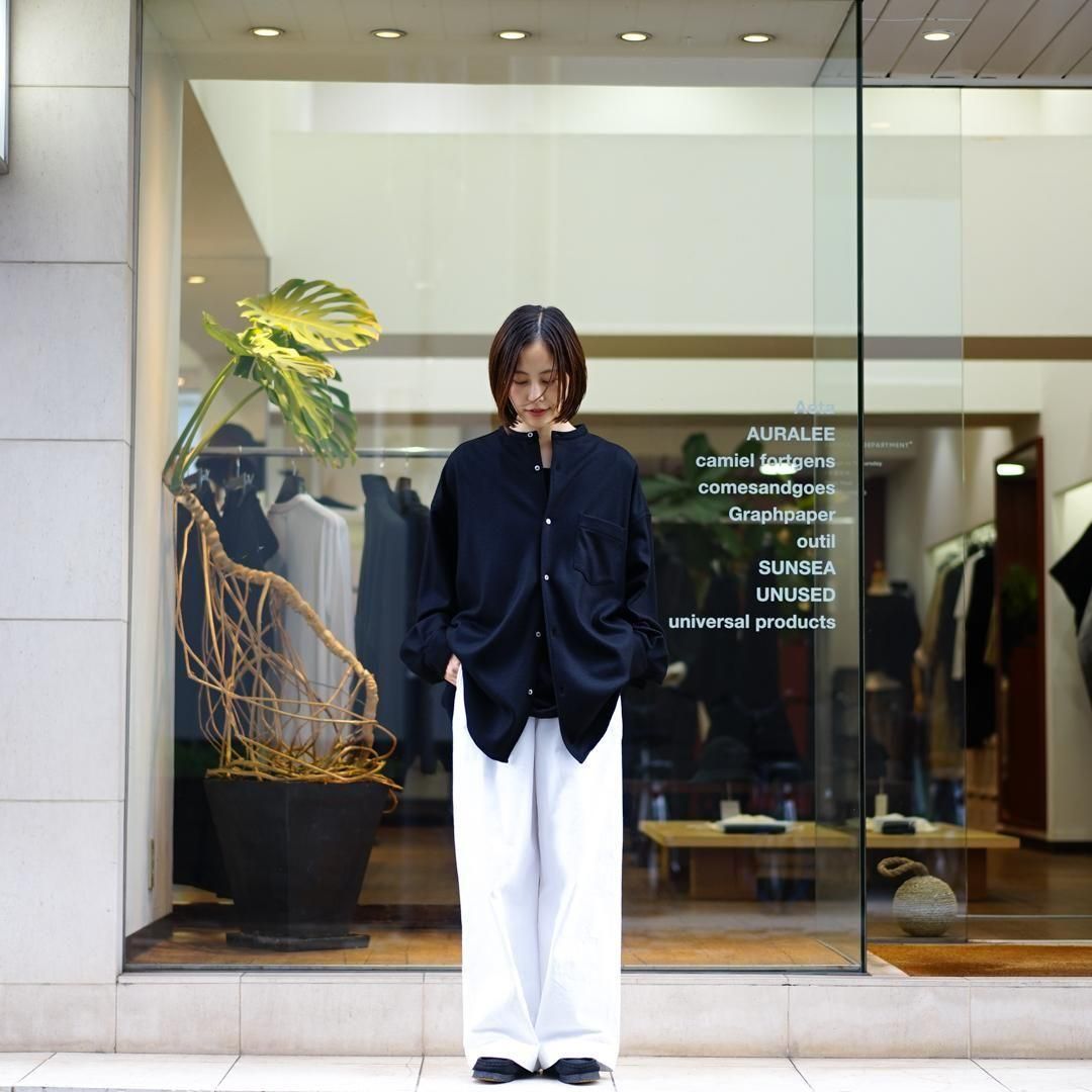 Graphpaper for womens (グラフペーパーウィメンズ) Wool Smooth Flannel Oversized Band Collar Shirt(GU253-50222B)/Black