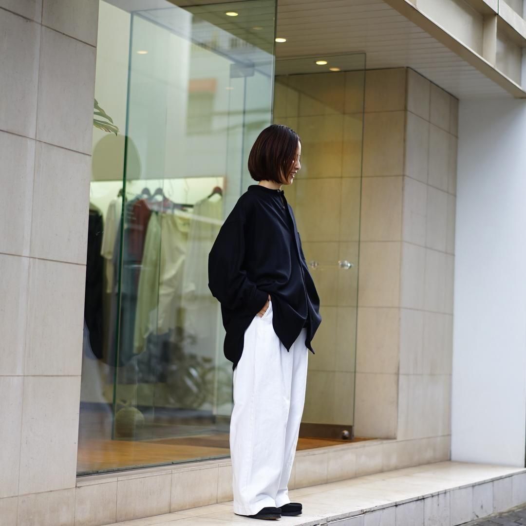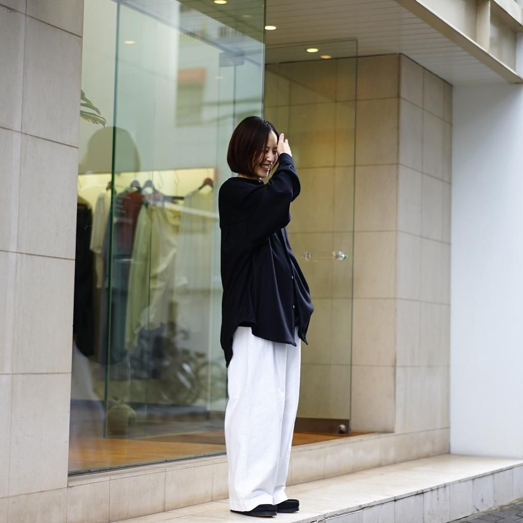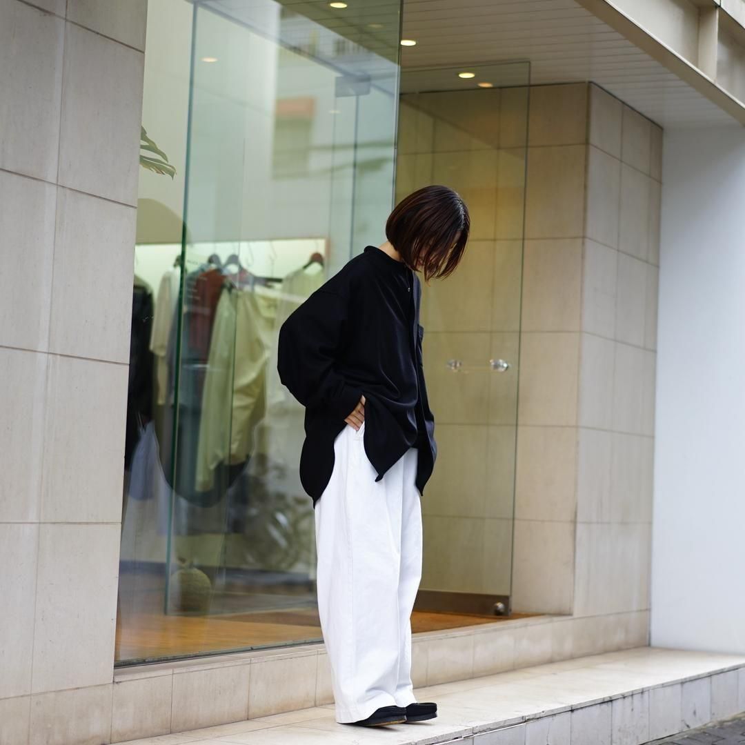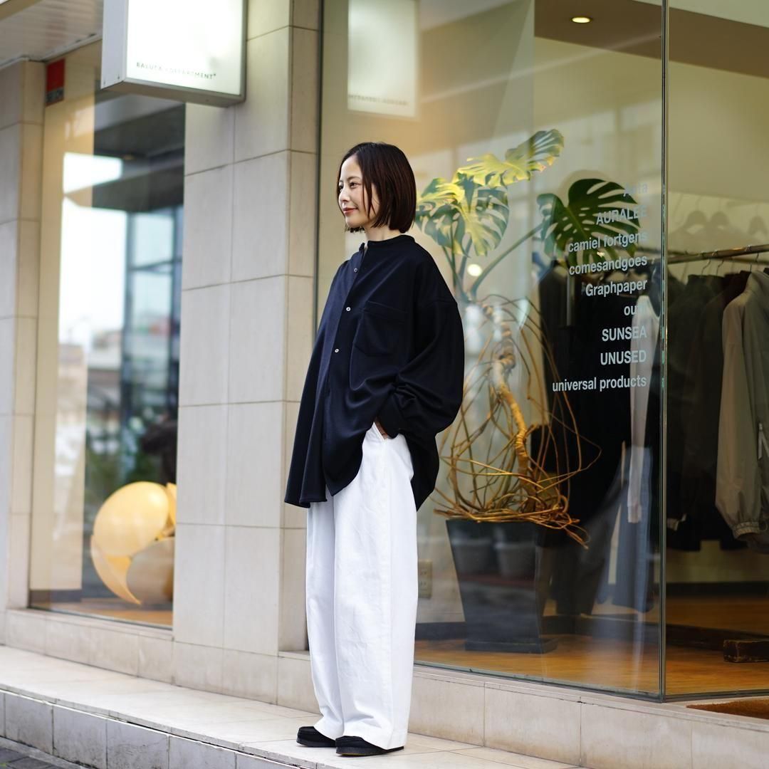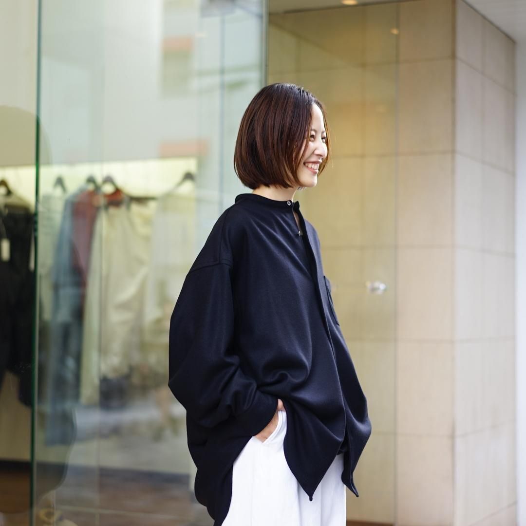 Graphpaper for womens (グラフペーパーウィメンズ) Wool Smooth Flannel Oversized Band Collar Shirt(GU253-50222B)/Black